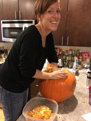 The git-er-done spirit that Colleen brought to helping me gut the Gillespie Halloween pumpkin so the kids and I could carve it after they got home from school — just a couple hours after I wrapped up chemo. Made me feel like a bad ass, devoted mama — and it's because I had another badass, devoted mama by my side helping me (before unloading my dishwasher and emptying my sink.)