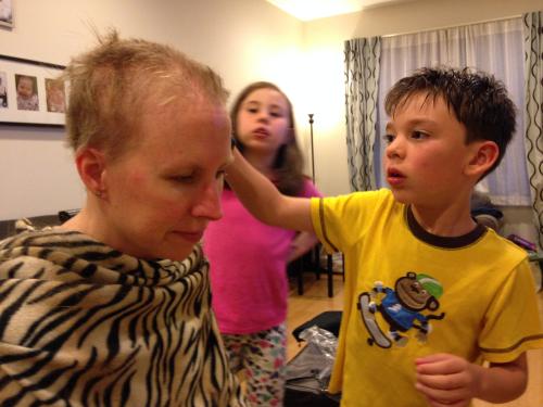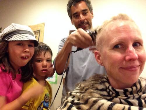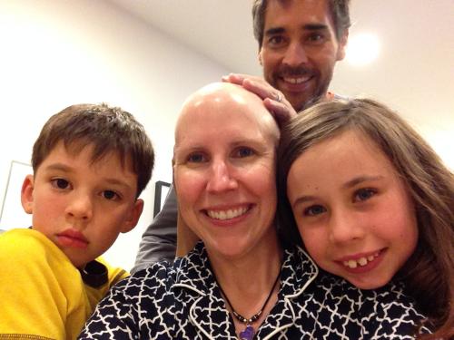 I didn't have time to share a play-by-play recap my second chemo treatment — aside from a quick Facebook post thanking my friend and former AP night editor Kathy McCarthy for her fine company and my family for a surprise visit. The abridged version is that I did as well with it as the first, if not better. Aside from a few low-energy days and a nagging but not-quite-NOT-nauseous feeling, I've been fine. Even got back to lap swimming the day before round 3. I felt pretty bad ass getting in the water with my bald head and half rack. The shy side of me almost wanted to wear a swim cap, but man, that would've been silly. And though there are fancy swim suits with pockets for faux breasts, I'm going with a comfortable lap-swimming suit and feeling no need to hide my acceptance of my one-breasted self. Some of you in my Facebook world have been asking about recent flare-ups in "parent-kid-sibling drama." I'm not one to complain about how hard parenting can be. Sort of feels like noting that grass is green or Fox News is stupid. I also feel that the compassionate thing to do is to weather my family's ups and downs with Sean as my co-captain, spitball the pros and cons of what's worked and hasn't worked with the closest of friends, and figure things out day by day. We're doing OK (even on days when we wonder if we are). If it weren't for the stresses and exhaustion of dealing with cancer at the same time, we'd probably all be struggling less with getting along. We've had a few good days in a row, so we'll ride this wave and the tide will keep turning (or some other mixed metaphor). The Monday-Wednesday household and child care help that our fine friend Mary Murray has lined up for us has been a HUGE help as Sean gears up for two trials (which thankfully got postponed a bit) and as I juggle work and chemo, sometimes hitting energy/patience walls before the kids wind down for bedtime. We are so lucky we don't have to wonder what we'd do without all the support we're getting from so many people in our lives. Every day, there's someone to thank ... then another ... and another. I thank all of you for keeping tabs on how I'm doing and cheering me on. You're always saying what an amazing job I'm doing as I soldier through all this. But know this: All the strength I'm mustering doesn't come exclusively from me. It comes from all of you, too. And for that, I am impossibly grateful.