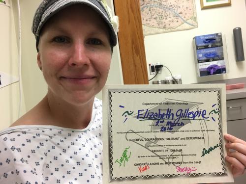 I stayed on top of my ultra-diligent moisturizing routine, got crafty with patches of non-stick gauze, did lots of whining that nobody ever seemed to hold against me. And now ... I'm done! Thirty radiation treatments, check! My awesome radiation therapists shouted "Woo hoooooo!!!!" over the intercom after I got my last dose of electrons this morning. Then they gave me a certificate congratulating me for completing radiation therapy and for "my proficiency in the art of being CHEERFUL, COURAGEOUS, TOLERANT AND DETERMINED." They chuckled good and hard when I played them F*ck That: An Honest Meditation. "Breathe in strength ... breathe out bullshit." Sean and I took the day off, had an indulgent breakfast, lounged around watching TV and napping, watching TV and napping, then took the kids out to an indulgent dinner. Felt great to be celebrating this milestone. My skin should start healing up good in about two weeks, when I start the next phase of my treatment: hormone therapy for the next five (plus?) years. I've heard Tamoxifen can be a bitch. But it's kept a lot of breast cancer bitches like me alive over the years, so I'll suck it up, deal with whatever unpleasant side effects I get and keep on keepin' on. At least it's just a pill, and I won't have to go to the dang hospital day after day after day after day. I am not going to miss one damn thing about the commute to and from and to and from and to and from Group Health. So glad to be moving on ...